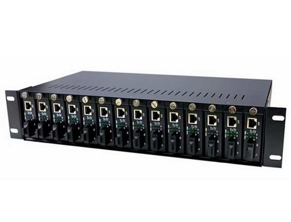 The 14 slots media converter chassis supports plug-and–play installation of stand-alone media converters convert modules ,can hold at most 14 pieces media converters.